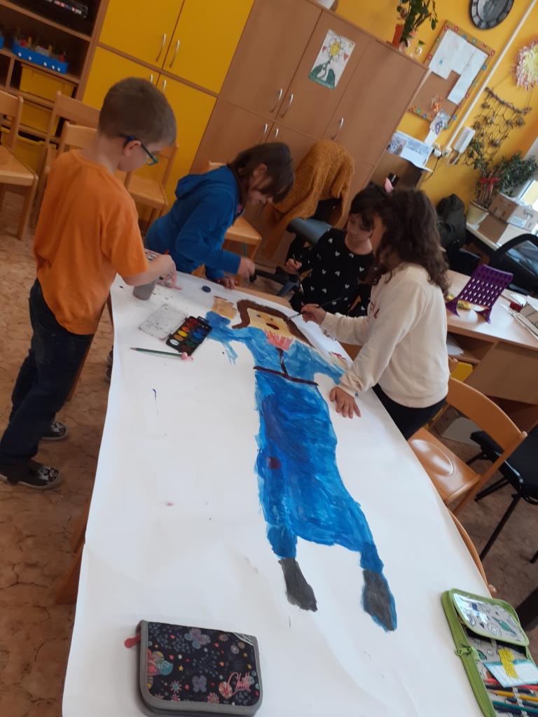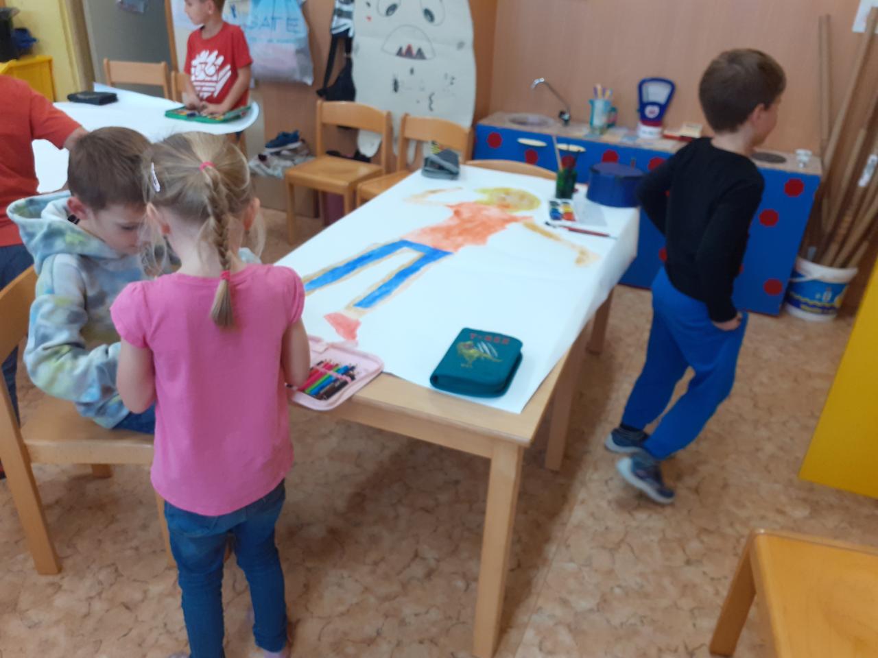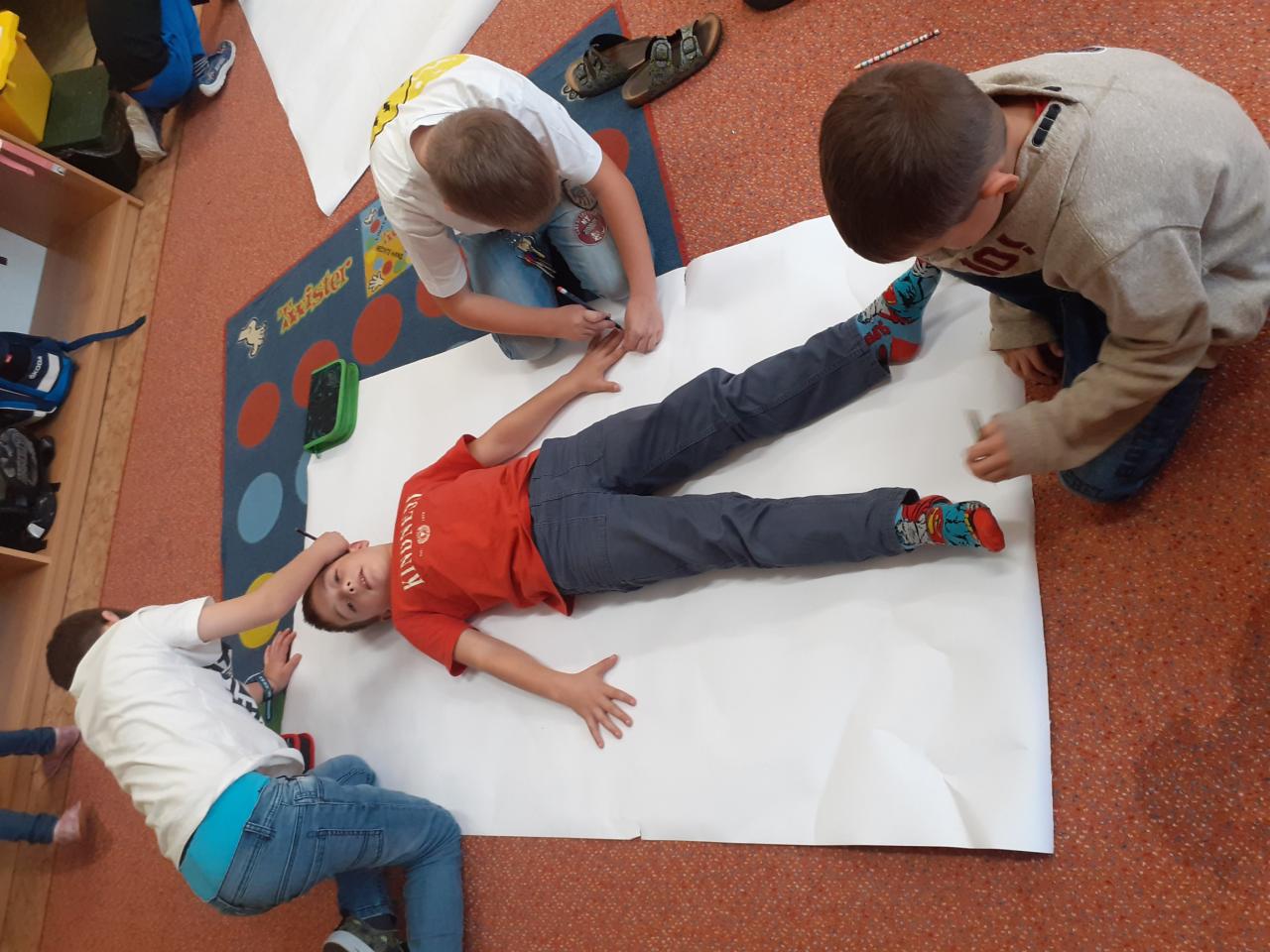Ve druhém oddělení jsme tvořili z papíru kamaráda v životní velikosti.