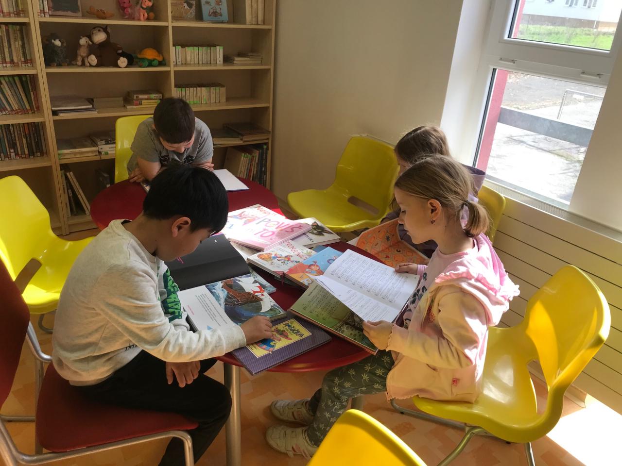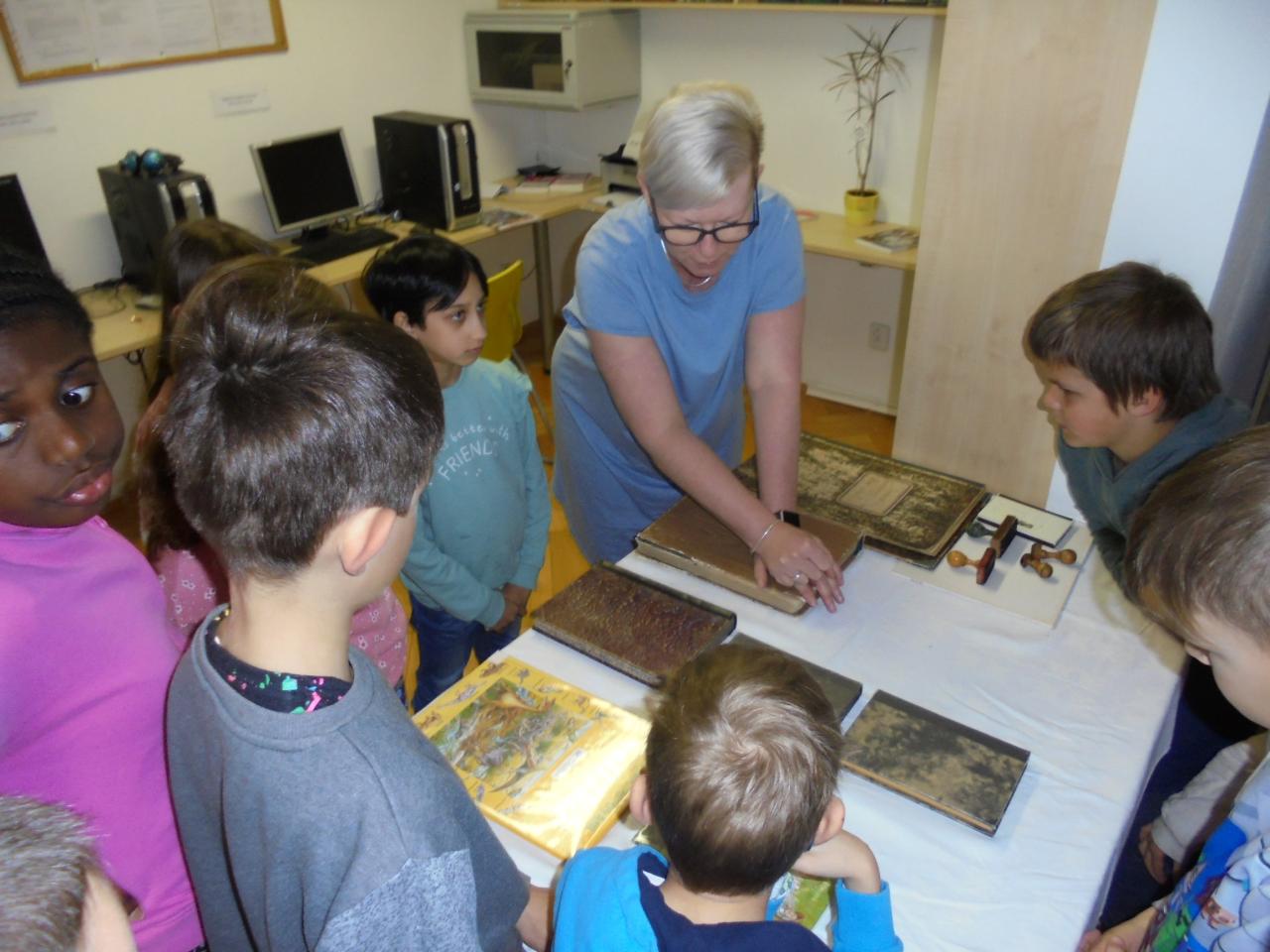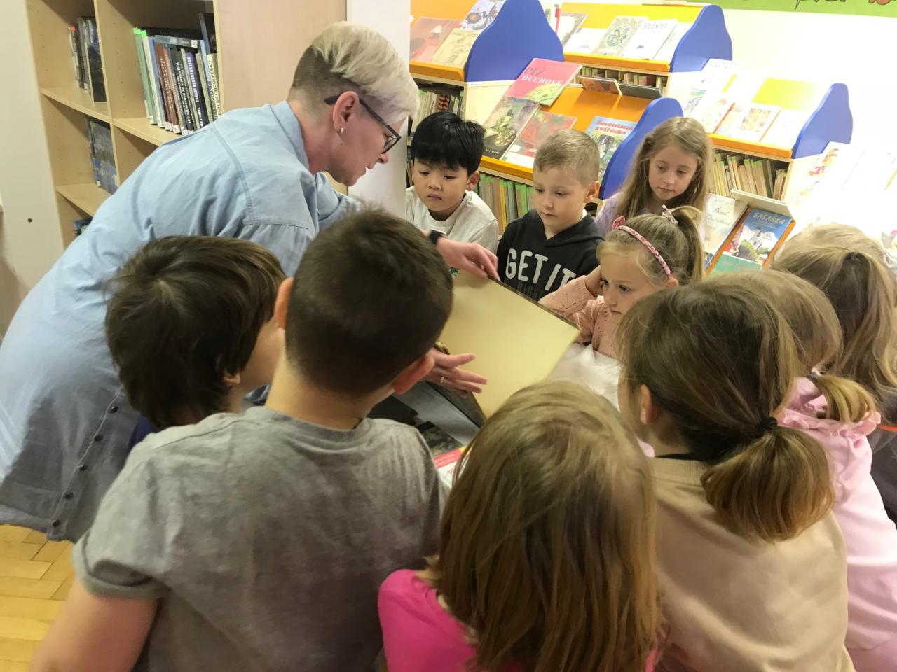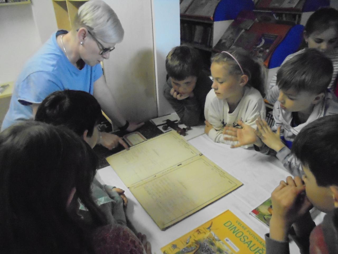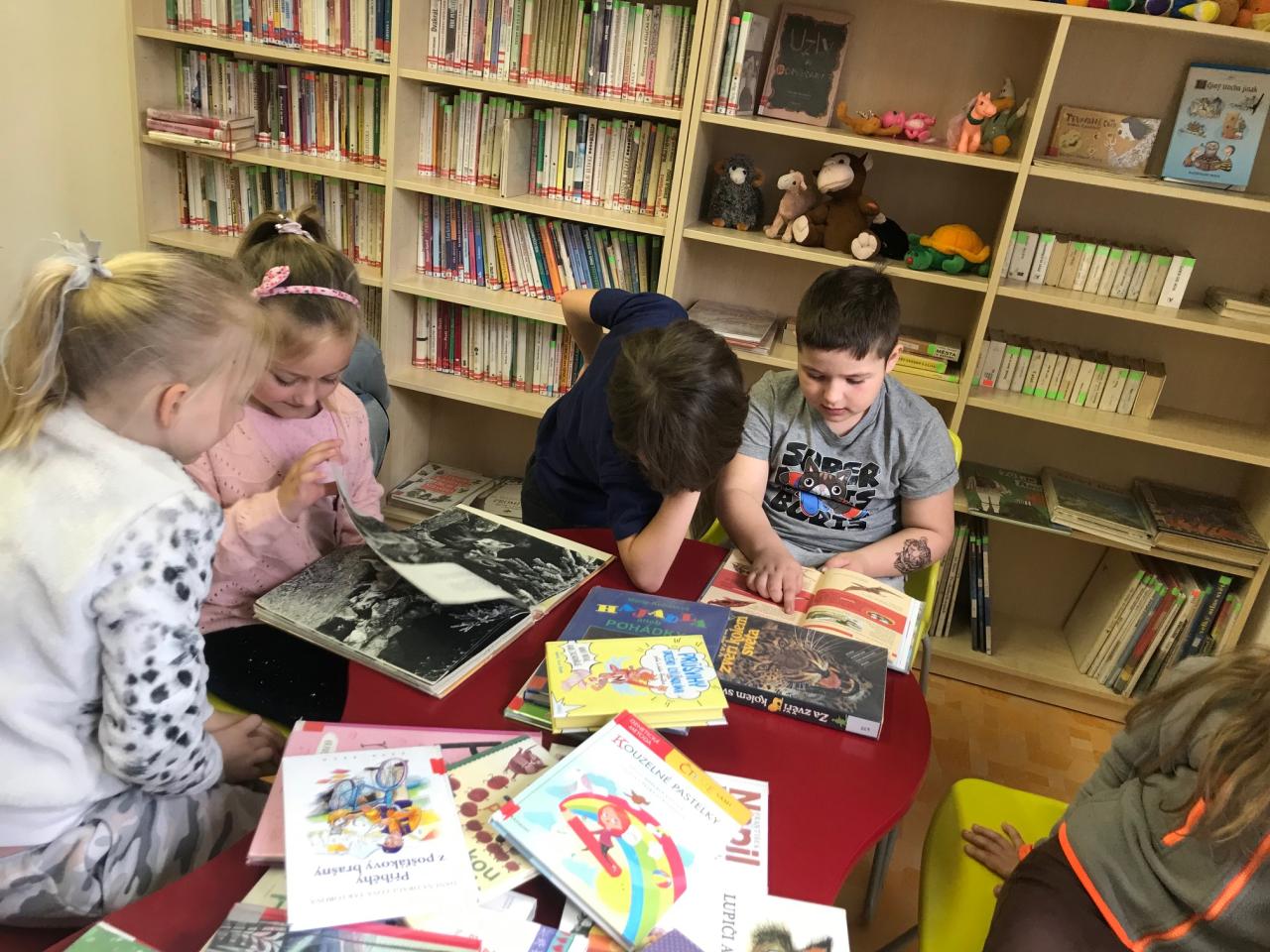 Ve dnech 2. a 5. dubna navštívili žáci 1. a 2. ročníků knihovnu ve Strašicích, kde se setkali s paní knihovnicí Evou Kloudovou, která s nimi vedla besedu. Prohlédli si staré inventární knihy z žákovské, učitelské i obecní knihovny. Nejvíce je upoutaly svou precizností a písmem nejstarší zápisky pocházející z roku 1917. Žáci měli možnost porovnat starý způsob řazení knih s dnešním systémem. V knihovně také nalezli prostor pro čtení dětských knih.