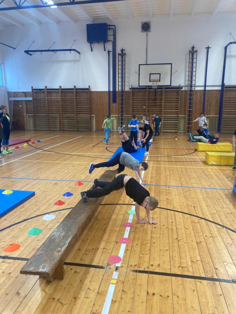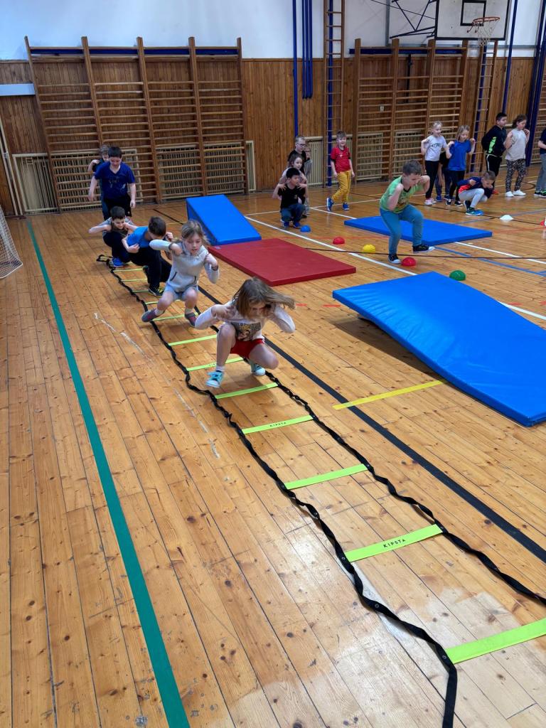 V další hodině přišly na řadu děti z prvního stupně, a to konkrétně kluci a holky z druhých ročníků. Cvičení na jejich motorický rozvoj probíhala se zábavnou motivací na množství zvířátek a děti si při hře ani nestačily povšimnout, jak krásně rozvíjejí pohyblivost svého těla.