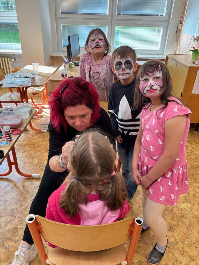 Děti si mohly vybrat z široké nabídky zvířecích či pohádkových motivů. Proměněné bytosti ve víly, spidermany, tygříky, králíčky, kočky i psi pak spokojeně dováděly ve třídách. Začátek „Dne dětí“ jim začal vskutku příjemně a zítra se mají také na co těšit.