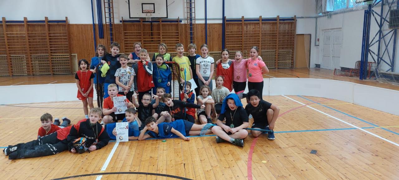 Téměř třicítka kluků a holek byla nalosována do 4 týmů. Každý tým měl svého brankáře a dvě střídající trojice a systémem „každý s každým“ si každé družstvo zahrálo tři aktivní zápasy. Děti mají florbal v oblibě, a tak do všech bojů dávaly své sportovní srdíčko a snažily se o co nejlepší výsledek.