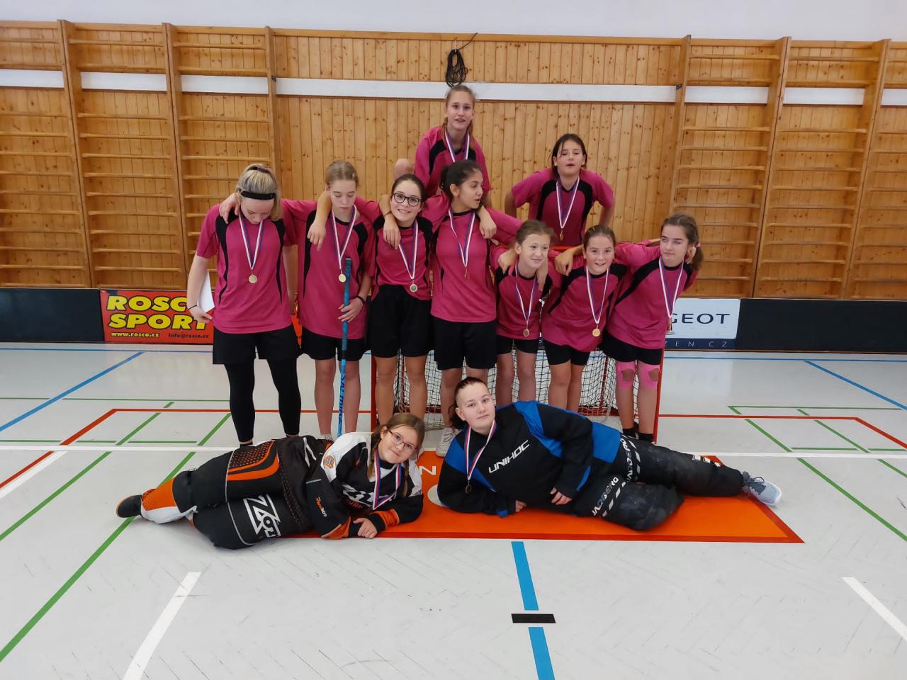 Naším nejšťastnějším dnem tohoto týdne bylo jednoznačně úterý. Spanilá jízda mladších děvčat byla pastvou pro sportovní oči všech jejich fanoušků. Holky nejprve naprosto s přehledem vyhrály svoji skupinu. Nejenže padaly z našich florbalových holí góly, ale obrana i brankářky byly tak neprůstřelné, že jejich konto zůstalo čisté. Semifinále už bylo náročnější, ale Radnice se nám podařilo porazit a finálový zápas s dívkami rokycanského gymnázia byl nervy drásajícím zakončením jejich snažení se šťastným koncem. První místo a postup do krajského finále byl takovou radostí, že se ve zlatém lesku medailí odrážely jejich slzičky štěstí.
