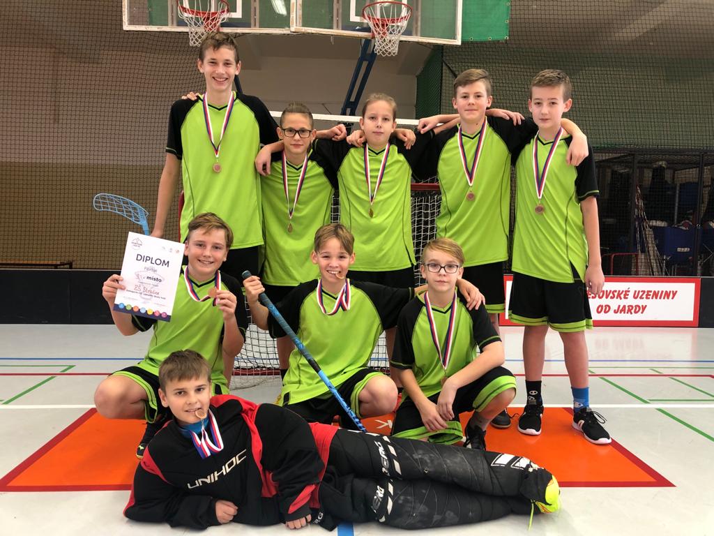 V pondělí se do Rokycan vydali mladší kluci, kteří postupovali ze základní skupiny do semifinálových bojů jako druzí po velmi těsných a vyrovnaných zápasech, kdy museli bojovat o vítězství do posledních sekund. V semifinále padli s rokycanskou “Masaryčkou“, která dominovala v jasném výsledku. V boji o třetí místo však nakonec porazili kluky z Mýta, kteří sice vyhráli základní skupinu, ale v boji o medaile je naši malí kluci porazili 3:1 a radovali se z třetího místa i bronzových medailí, které si ze závěrečného vyhlášení hrdě odnášeli, neboť konkurence dvanácti týmu z rokycanského okresu byla obrovská.
