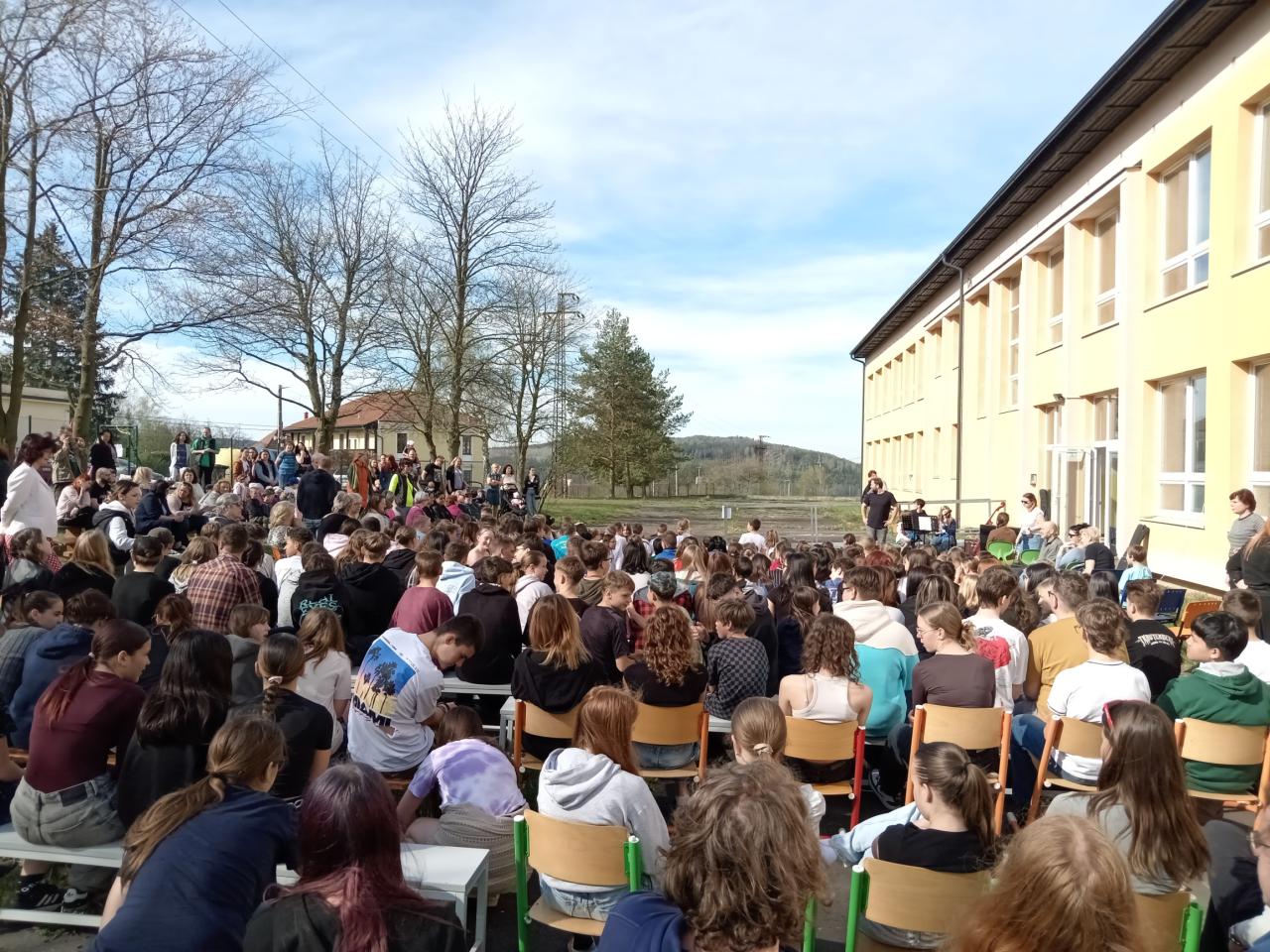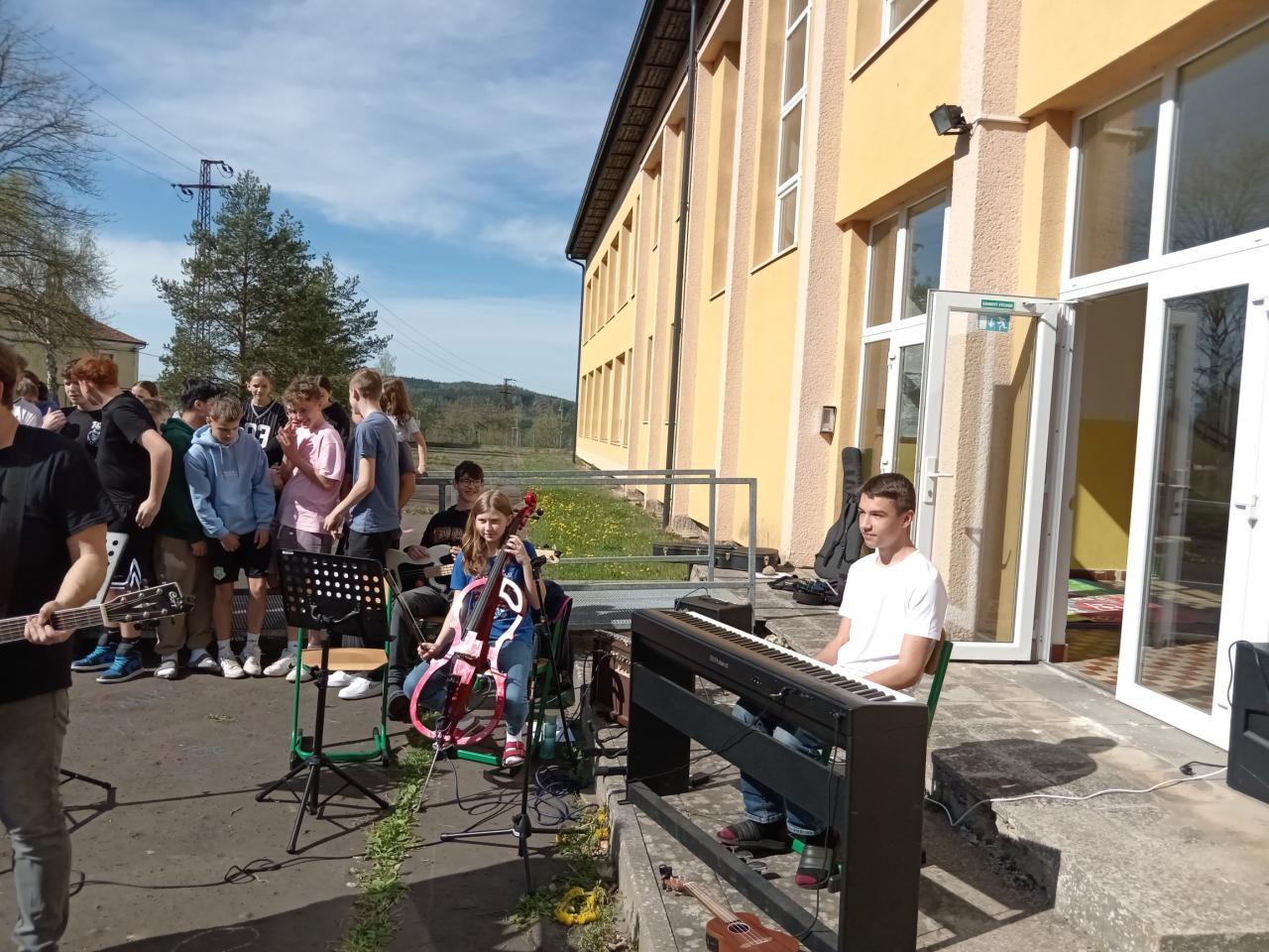 Rodičům a dalším příznivcům školy se představily se svými písněmi jednotlivé třídy obou stupňů. Celou akci zorganizoval pan učitel Mgr. Petr Šilhánek, který zpívající doprovázel hrou na kytaru. Všechny třídy podporoval svým zpěvem pěvecký kroužek. O hudební doprovod celé akce se postarali Alžběta Monhartová (6. A) na housle, Kateřina Monhartová (8. B) na flétnu a violoncello, Marek Červenka (9. A) na kytaru a baskytaru a Adam Jícha (9. A) na klávesy.