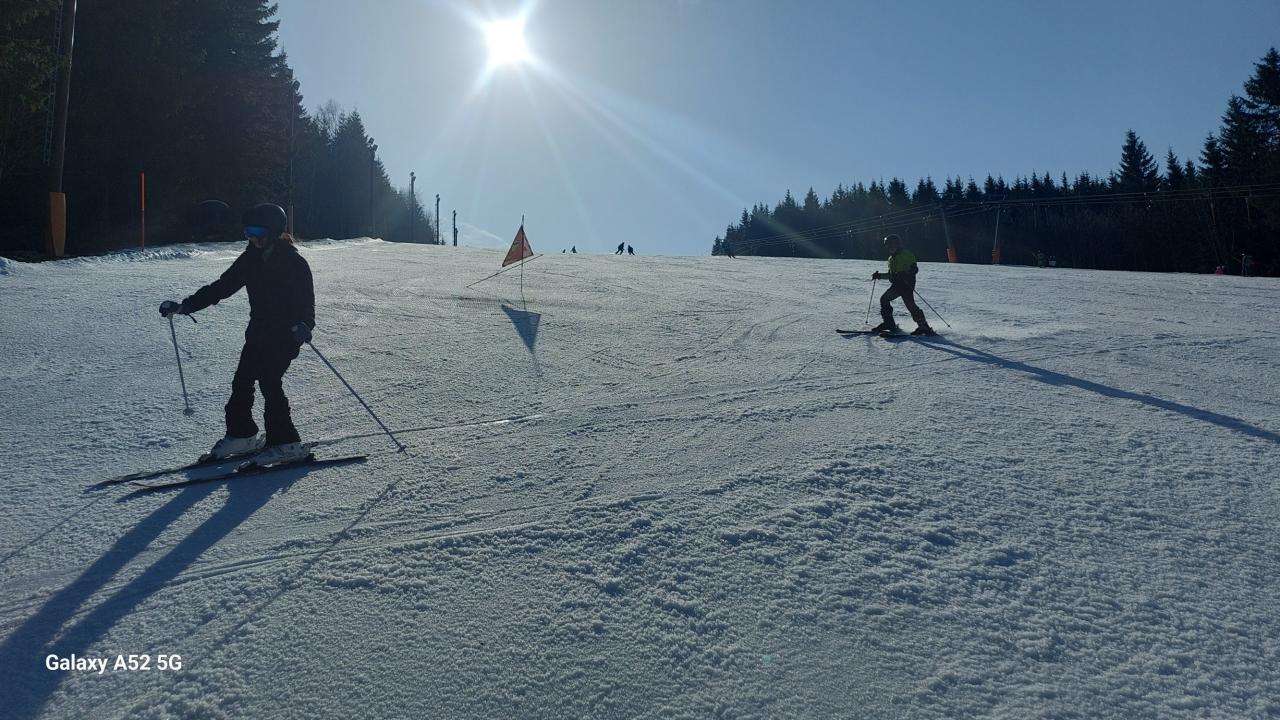 Od pondělí do čtvrtka, dopoledne i odpoledne jsme se potkávali na nástupu před hotelem v plné lyžařské zbroji, připraveni se porvat se všemi záludnostmi lyžařského umění. Ač jsme se tu vyskytovali v období ne úplně sněhu přívětivém, na sjezdovkách v celém lyžařském areálu ležely zásoby technického sněhu, který nám obětaví rolbaři vždy přes noc upravili do skvělé sjezdové kondice. My jsme pak mohli ve slunečních paprscích, které sice tvořily příjemný kolorit krkonošského zimního dne, ale zároveň lačně “požíraly“ sněhové bohatství hor, pilovat své lyžařské dovednosti. Většina ze zúčastněných udělala během těchto pár dnů obrovský výkonnostní posun a z většiny nelyžařů odjížděli domů více či méně zkušení lyžaři.