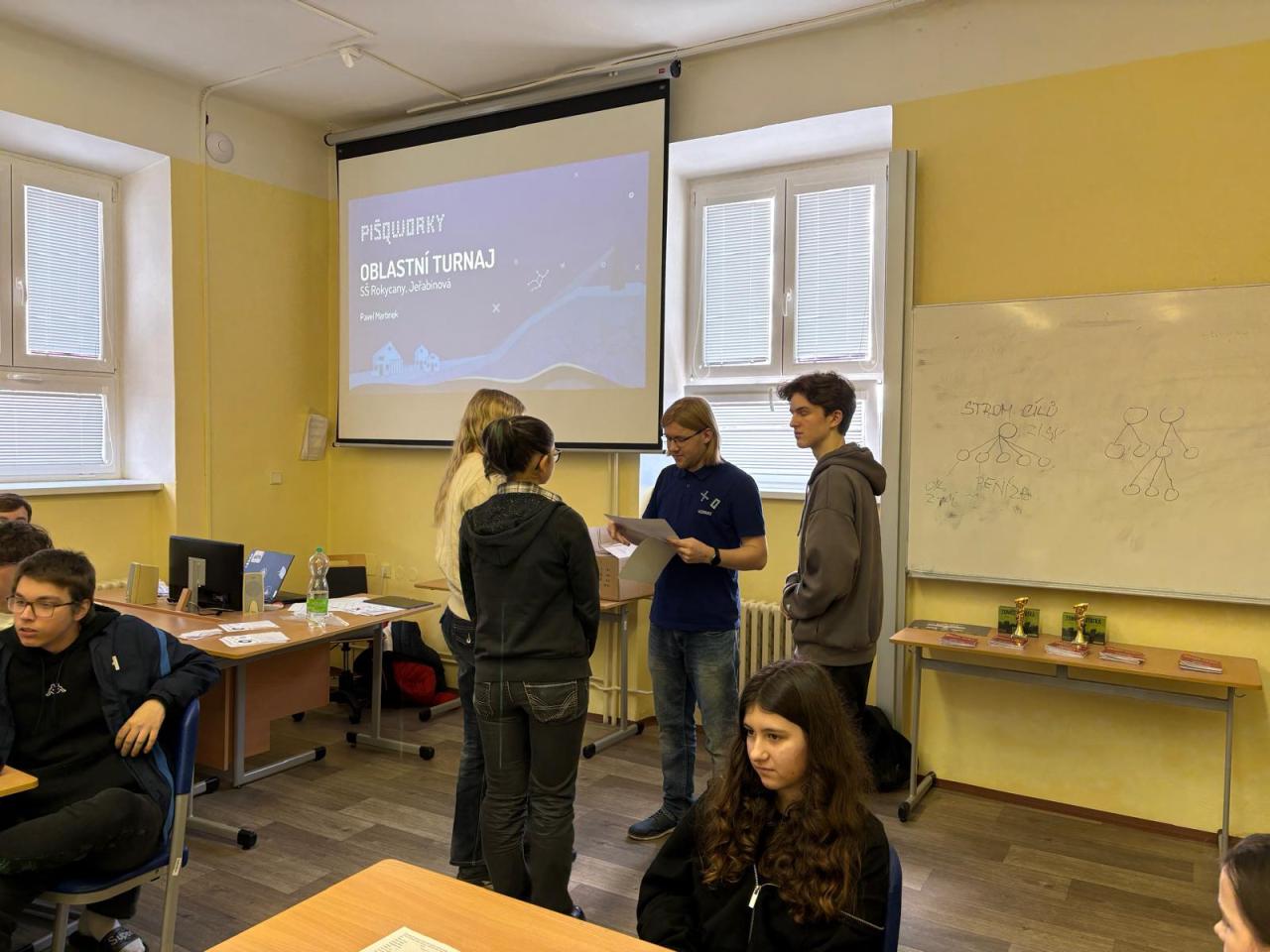 Právě tým „Jméno“ složený z deváťáků se dokázal probojovat až do finále. Jeho členové – Viktorie Svejkovská, Barbora Stupková a Matyáš Maxa – v napínavých partiích předvedli skvělou strategickou hru a statečně čelili soupeřům z rokycanského gymnázia. Ačkoliv v závěrečném duelu podlehli, obsadili vynikající 2. místo a postupují do krajského kola soutěže.