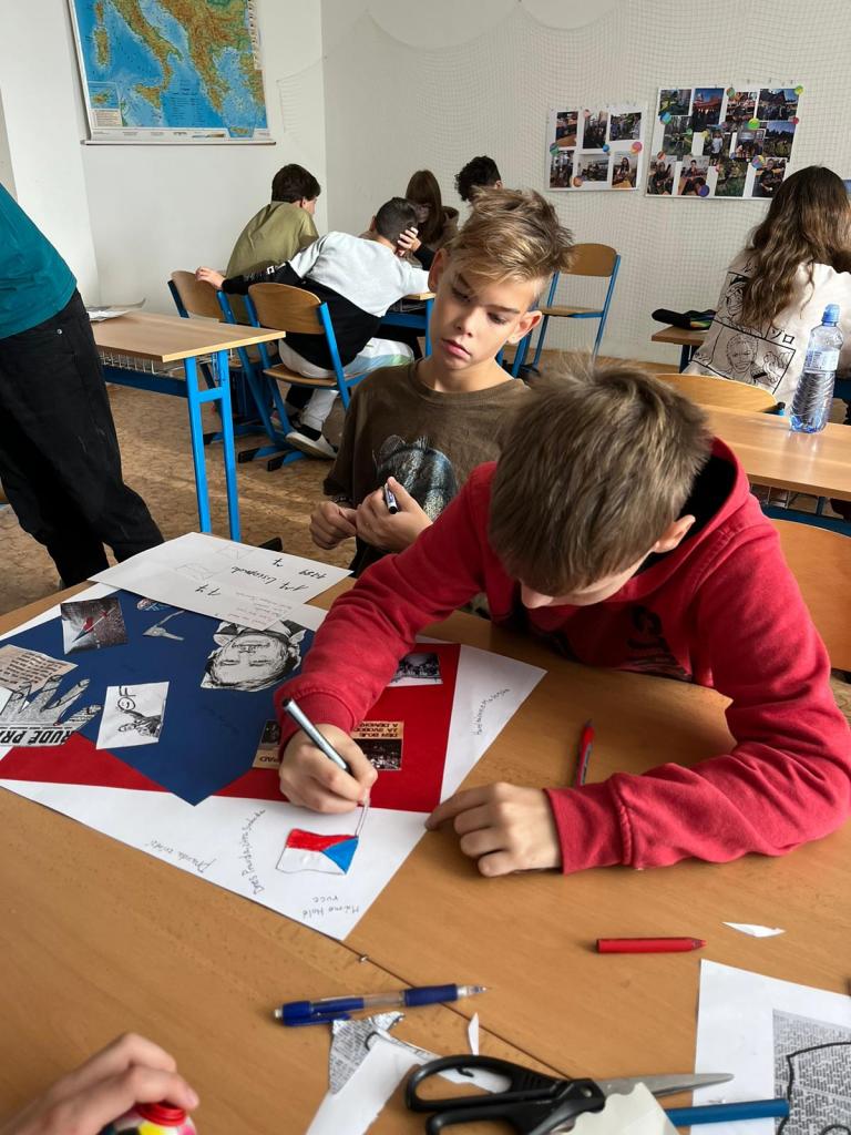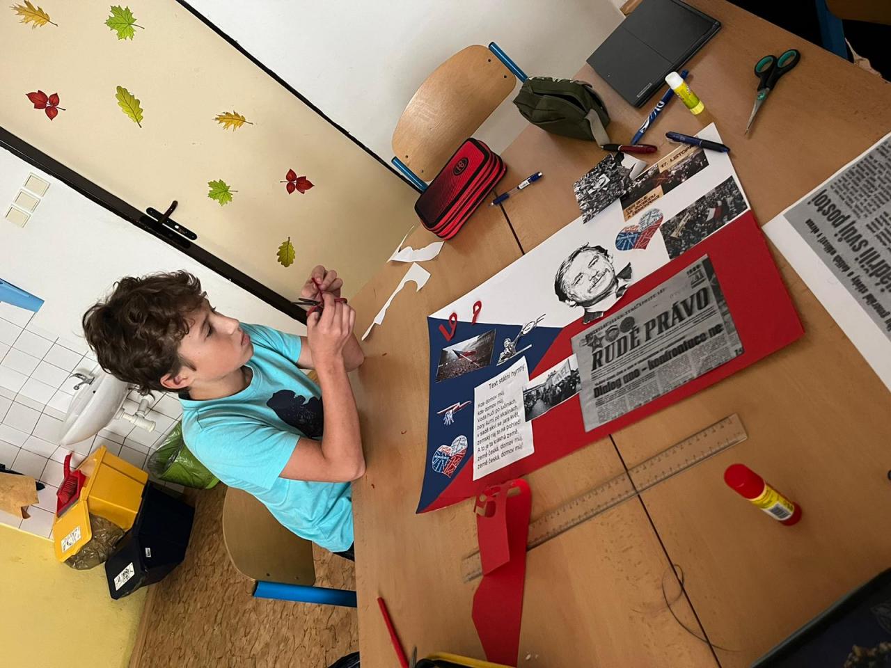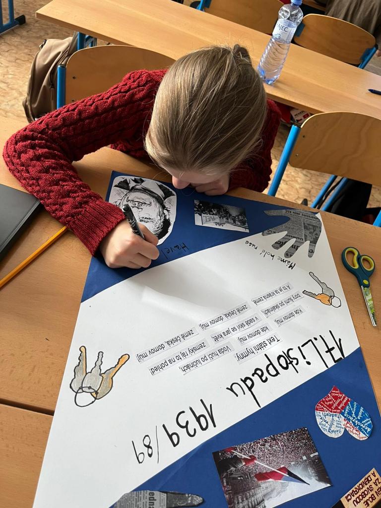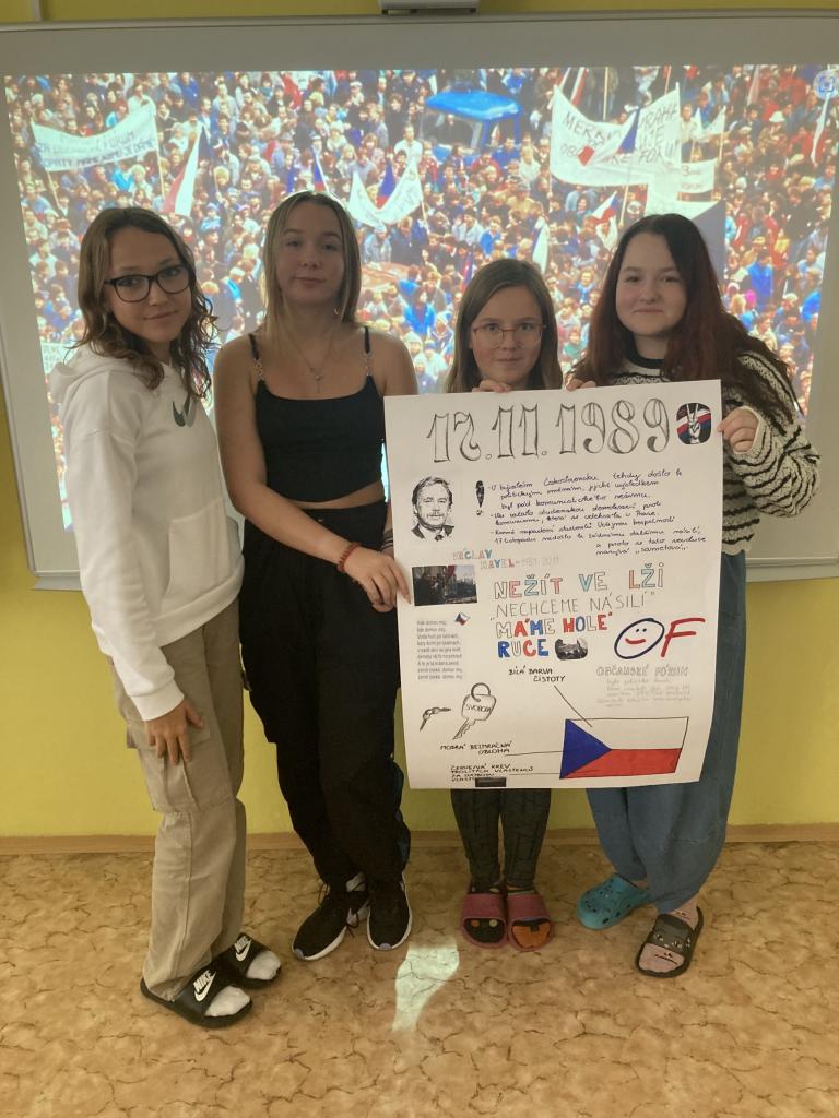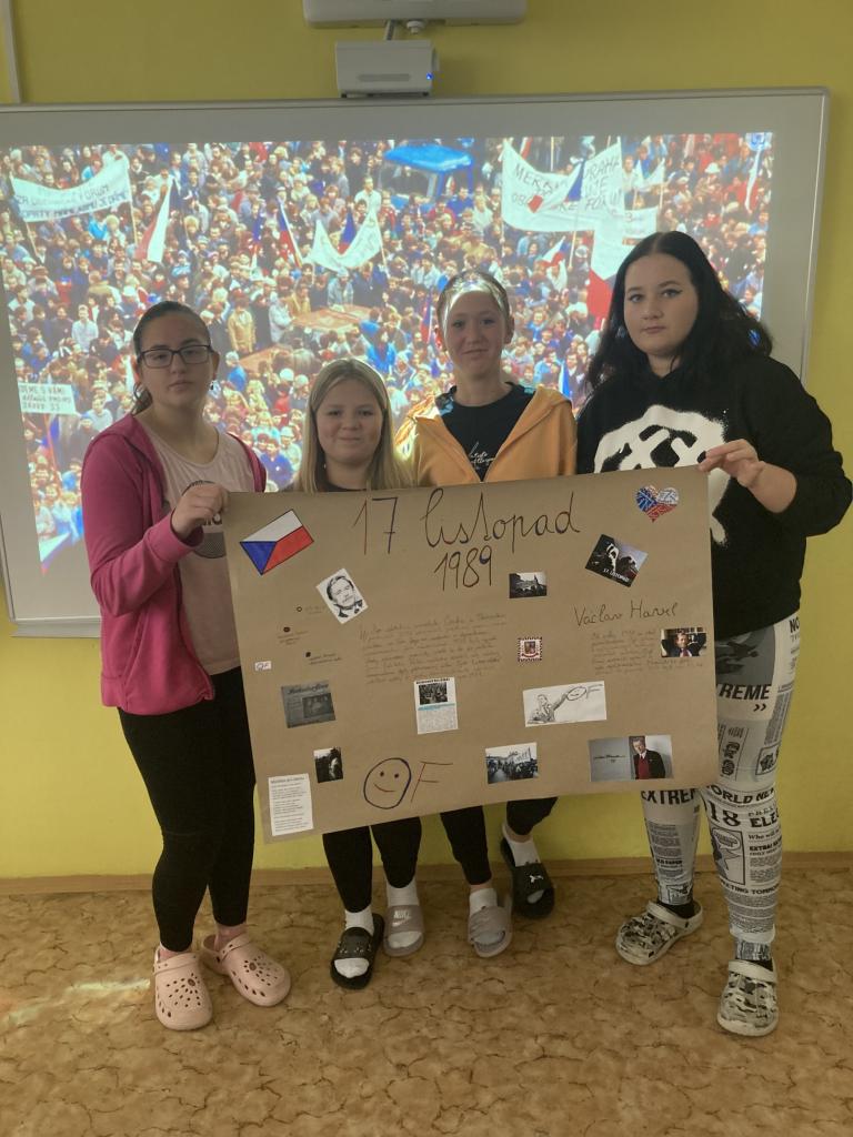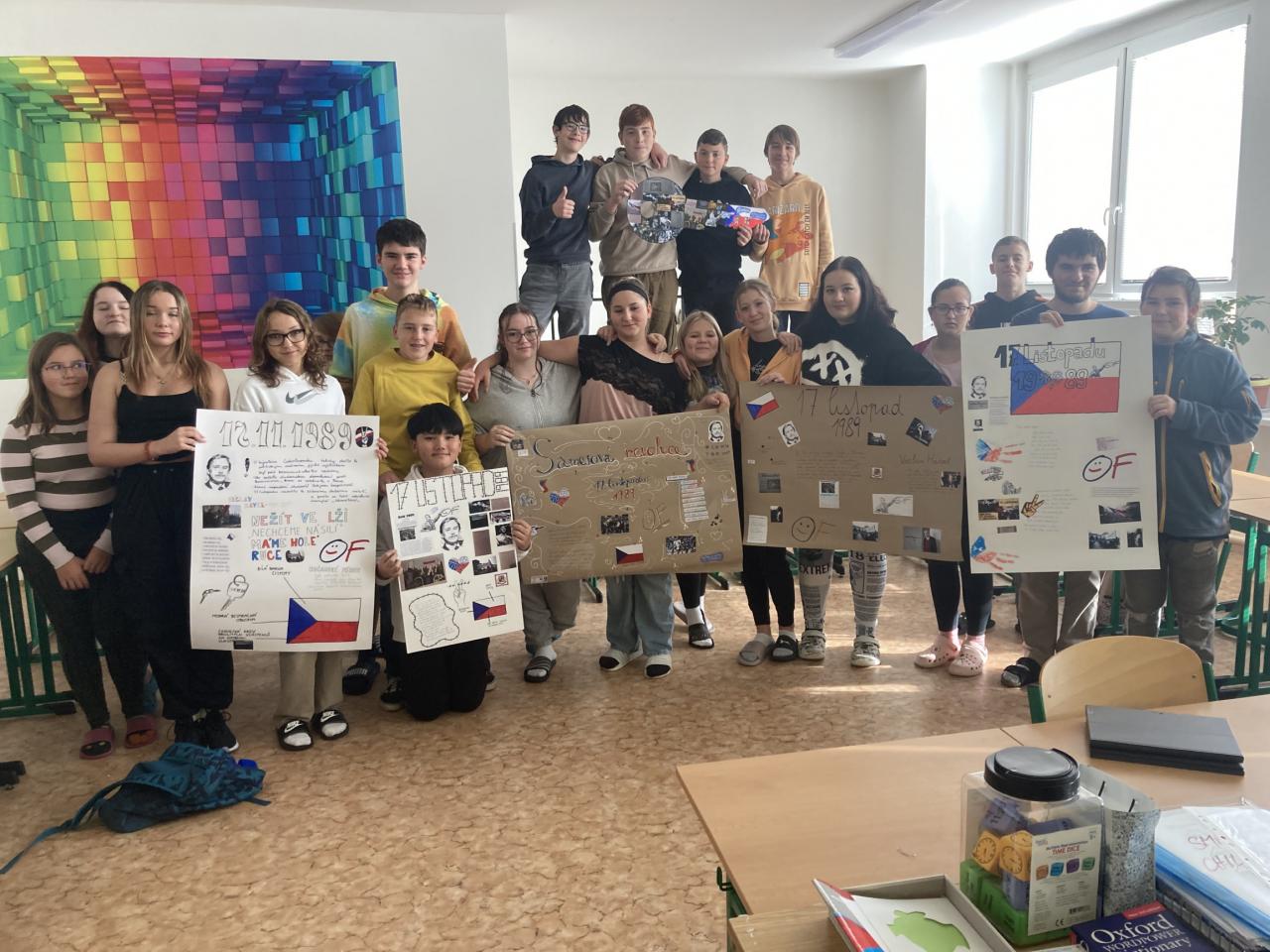 Žáci obou stupňů uchopili toto téma pod vedením paní asistentek tvůrčím a neotřelým způsobem, a tak se kromě klasického výkladu o listopadových událostech věnovali nejrůznějším skupinovým aktivitám souvisejících s tímto tématem.