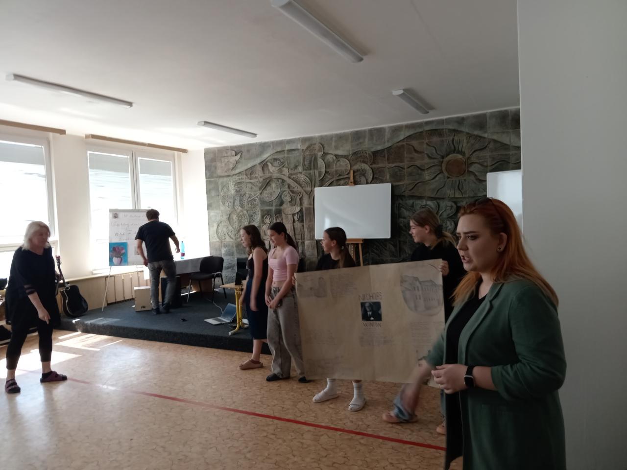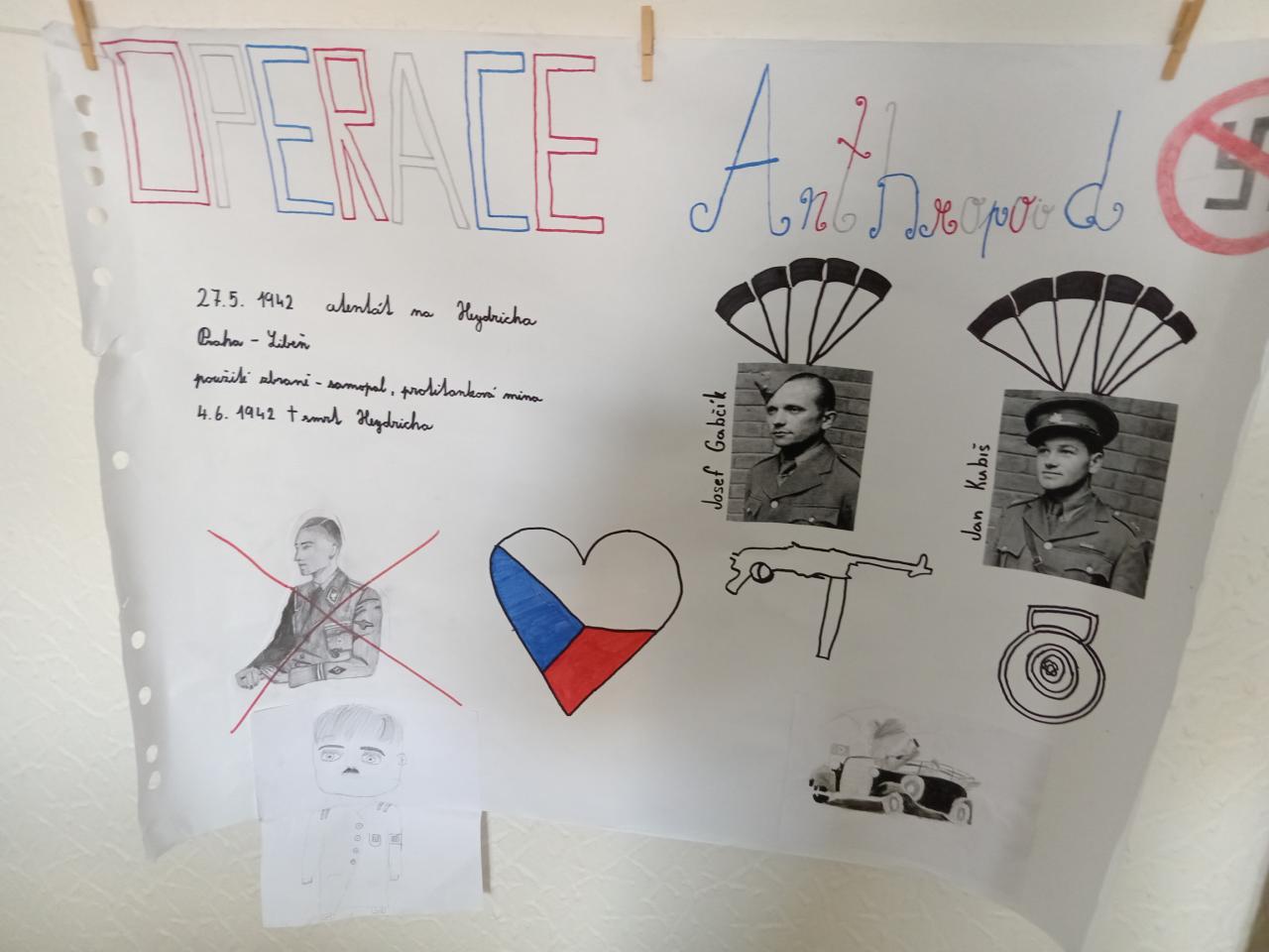 6. B si zvolila Operaci Anthropoid. Ve svém výstupu žáci představili klíčové momenty atentátu na říšského protektora Reinharda Heydricha i osudy parašutistů a civilistů, kteří se podíleli na této nelehké misi.