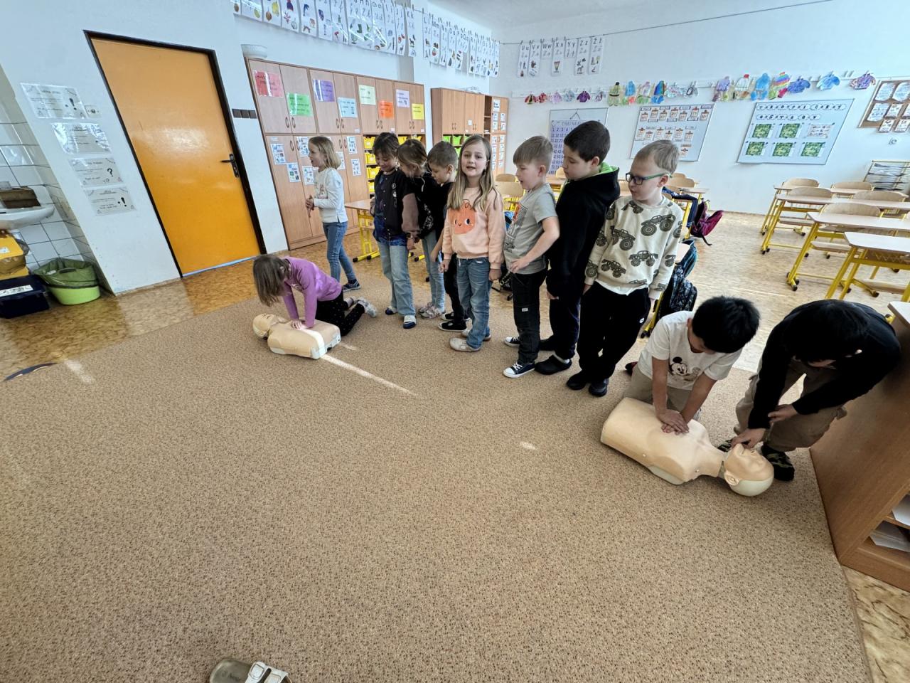 Další aktivitou bylo zkoumání různých vůní a zvuků, které je naučily pozorně naslouchat svému okolí. Součástí hodin je také důraz na hygienické návyky. Žáci se učí, jak si správně umývat ruce, jak se starat o zuby a proč je důležité dodržovat osobní hygienu. Tyto praktické situace si děti vyzkoušely na modelových příkladech, což jim pomohlo lépe si zapamatovat důležité zásady. Ve skupinách se obkreslovali na papír, uvědomovali si a popisovali jednotlivé části těla. Zjišťovali, co tělu prospívá a co mu naopak škodí, jak si počínat při nemoci či úrazu atd...