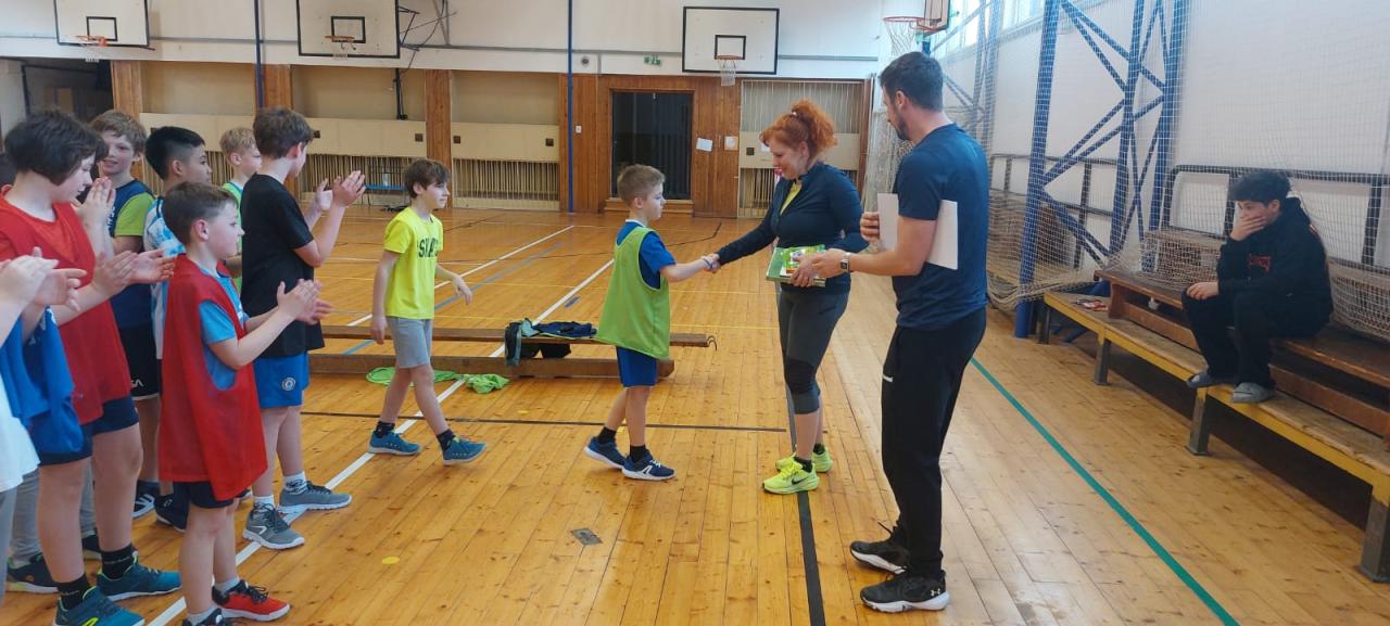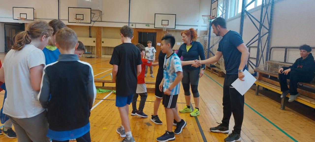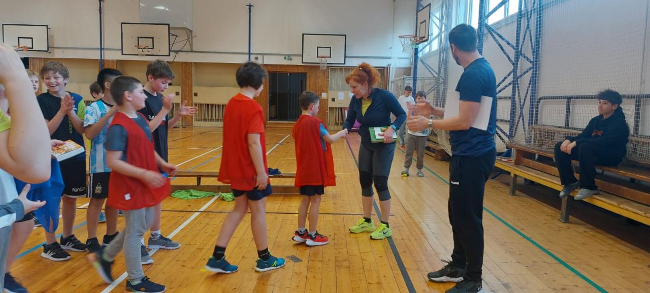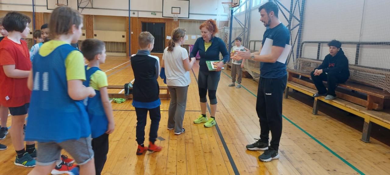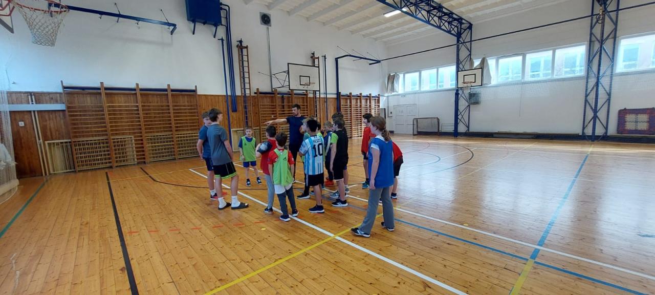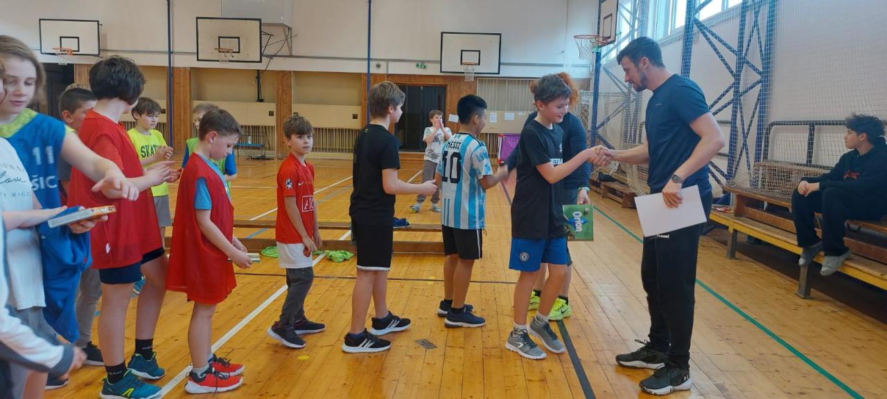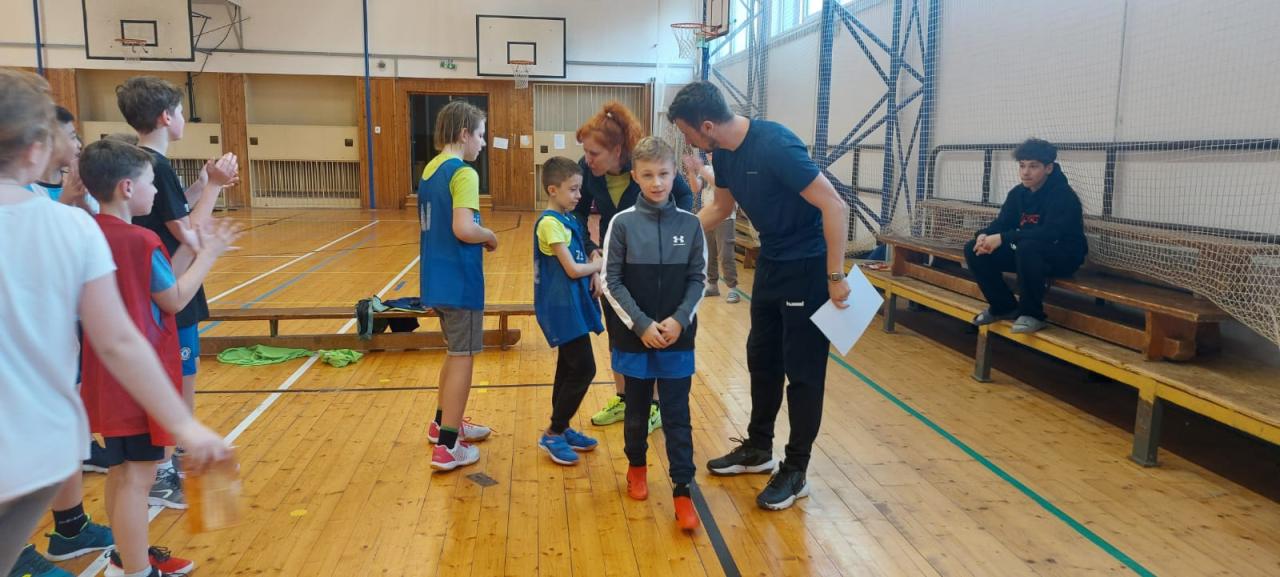 Na palubovce tělocvičny se představila čtyři družstva s losovanými hráči od třetí do páté třídy. Dívky i hoši si přišli zahrát nabití energií a chutí do společných zápasů. S pískáním pomáhali zkušení sportovci z devátého ročníku – David Korba a Honza Doskočil, kteří zároveň předávali své zkušenosti svým mladším následovníkům.