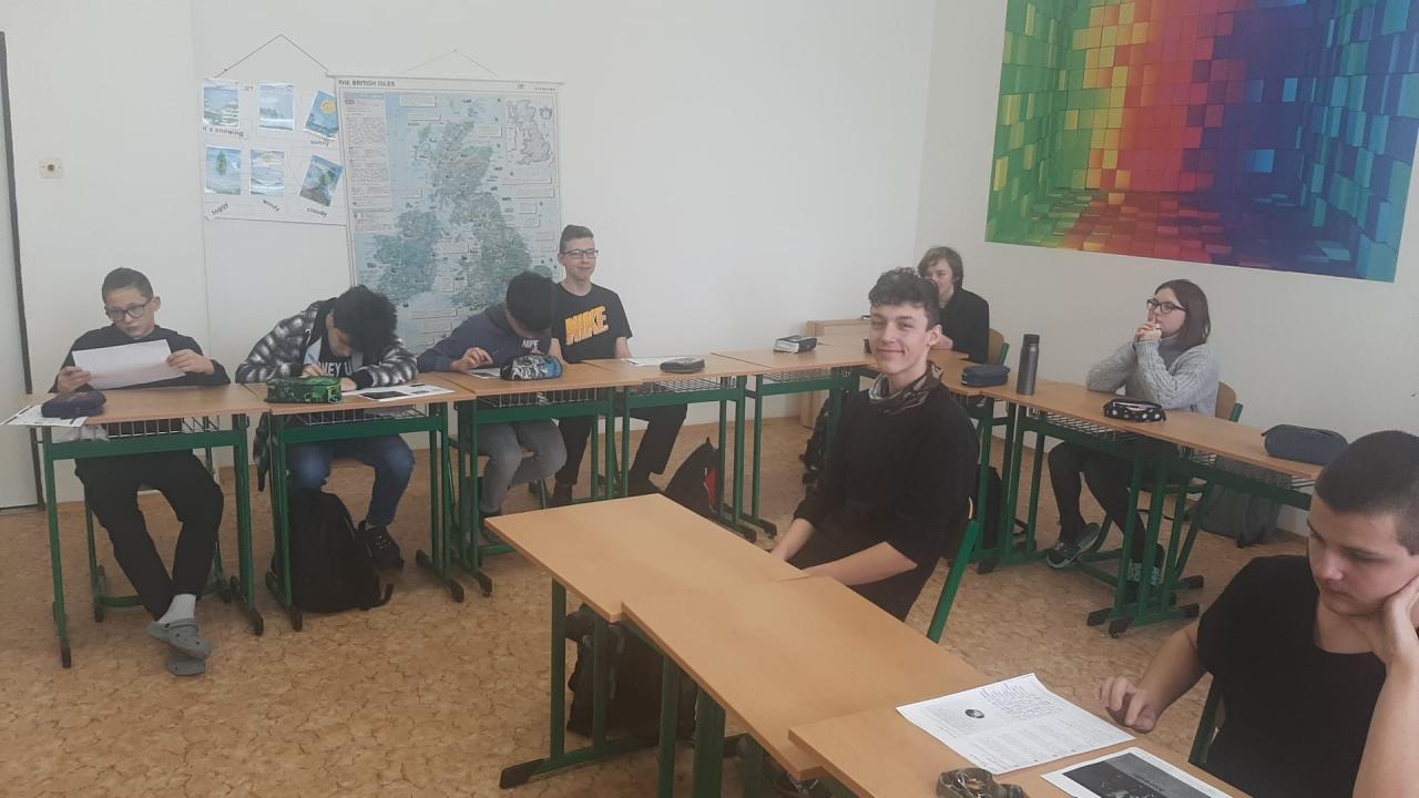 Podobně jako v němčině se museli žáci popasovat s poslechovým testem a následně pak řešili úkoly spojené s porozuměním psanému textu, bohatostí slovní zásoby a záludností gramatických pravidel. Vrcholem klání byla komunikace na vybraná témata, která probíhala ve veselém duchu povídání a vyprávění o téměř všech oblastech našeho života. U některých soutěžících se objevila i nervozita a tréma, ale ta většinou po pár minutách povídání opadla.