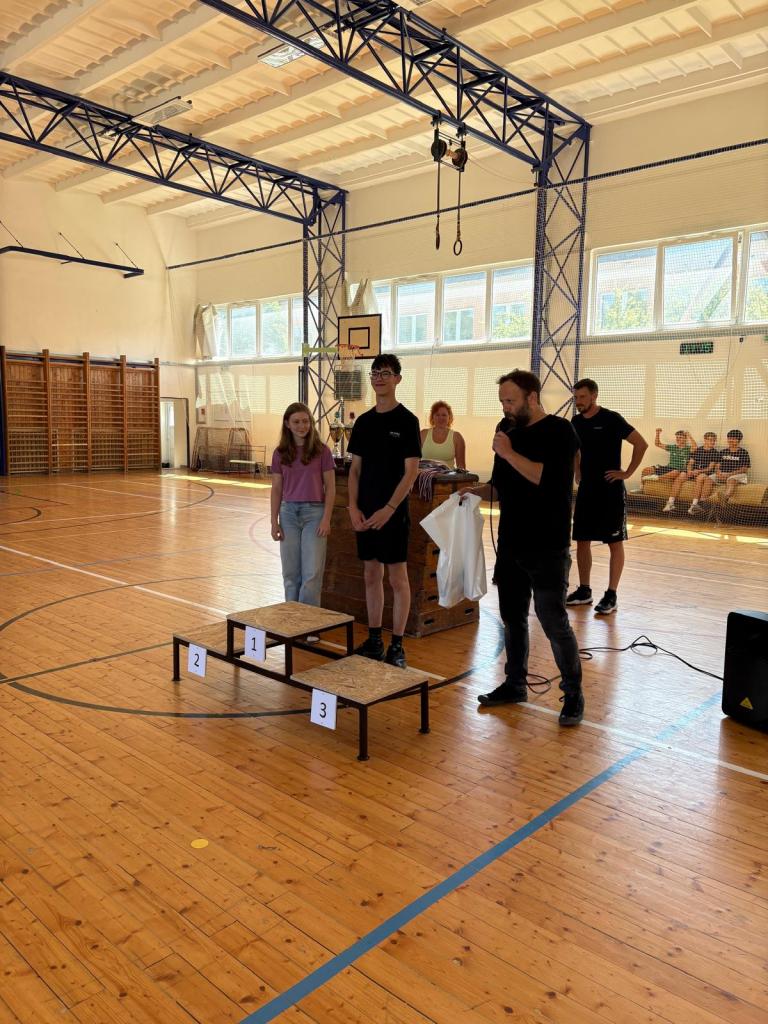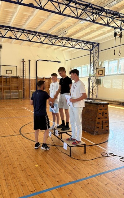 V úvodu promluvil pan ředitel Martin Straka, který poděkoval sportovcům za reprezentaci školy a připomenul, jak vysoce si váží toho, že naše škola žije pohybem a že přeje všem dětem sportem a skvělými zážitky naplněné letní prázdniny. Pak už došlo k vyhlašování těch nejlepších. Oceňovali jsme „TOP 5“ - pět nejlepších v každé kategorii a jednotliví kluci i holky si za doprovodu oceňujícího potlesku hrdě kráčeli pro svá ocenění a pyšné potřepání rukou a poklepání po ramenou od svých tělocvikářů. Největší potlesk pak sklidily trojice těch úplně nejúspěšnějších, které získaly i pěkné ceny, a ve starší kategorii ti úplně nejlepší i putovní poháry.