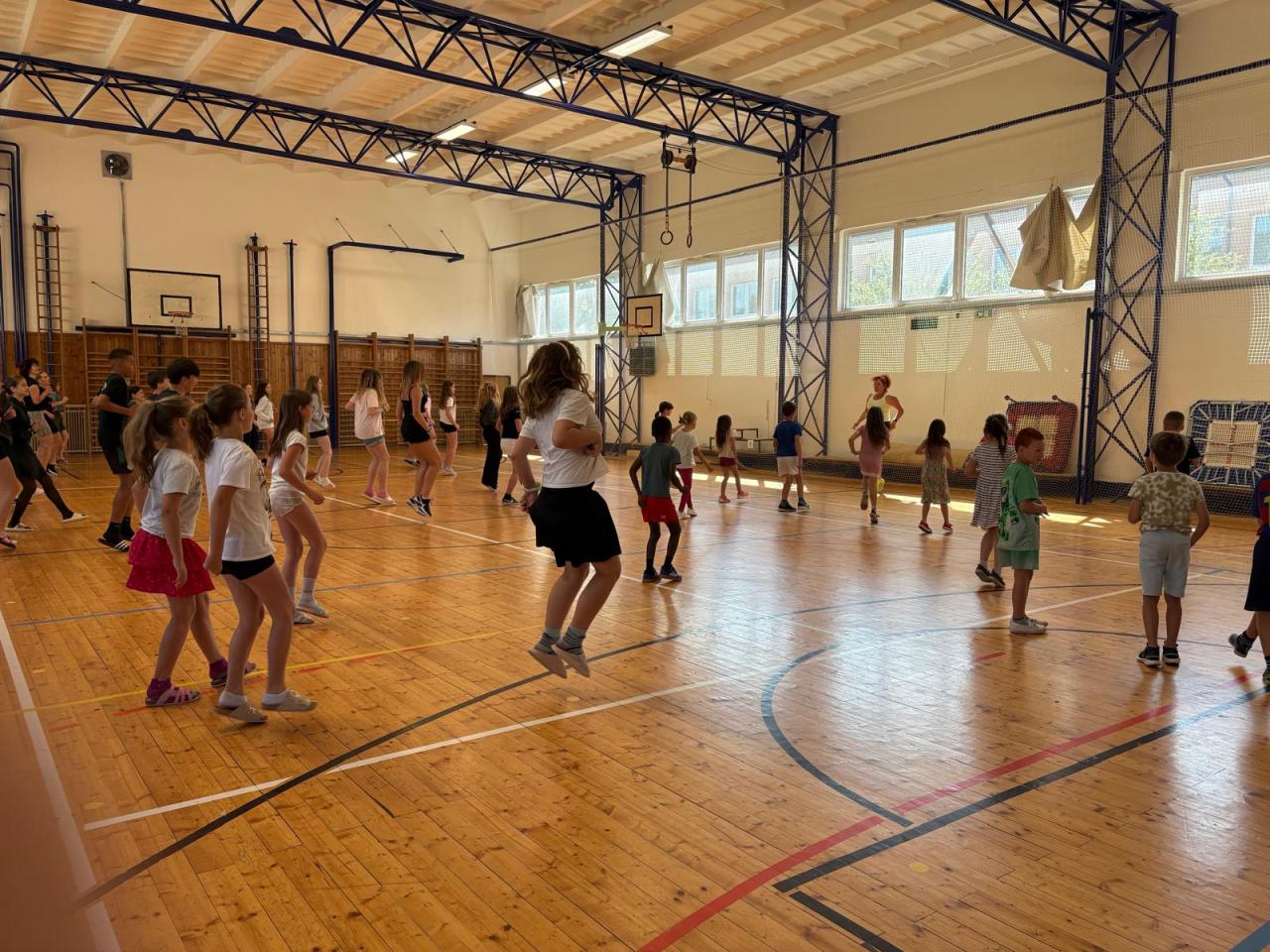 Dalším dílem pohybové skládanky bylo cvičení s hudbou. Je až s podivem, kolik holek i kluků se vejde do prostoru naší tělocvičny. Děti z prvního i druhého stupně rozvlnily svá těla v rytmické kadenci tanečních melodií, které zvaly k ladným kreacím a zumbovým sestavám.