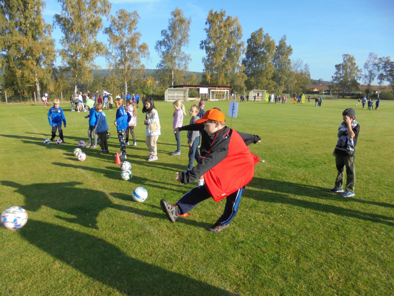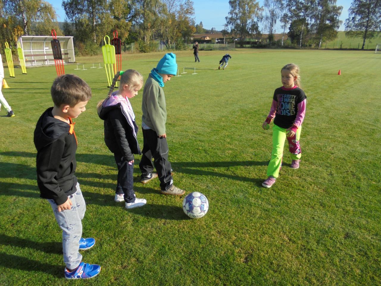 Po jednotlivých třídách se sportovci střídali na jednotlivých stanovištích, která vylepšovala a prověřovala jejich sportovní um, fotbalovou techniku a logické myšlení. Kombinace všeho dohromady činila někomu nemalé potíže, kterým jsme se s legrací mohli zasmát. Vždyť nikdo není dokonalý. V samém závěru žáci obdrželi bohatou sladkou odměnu a důkladně protaženi odcházeli na zasloužený oběd.