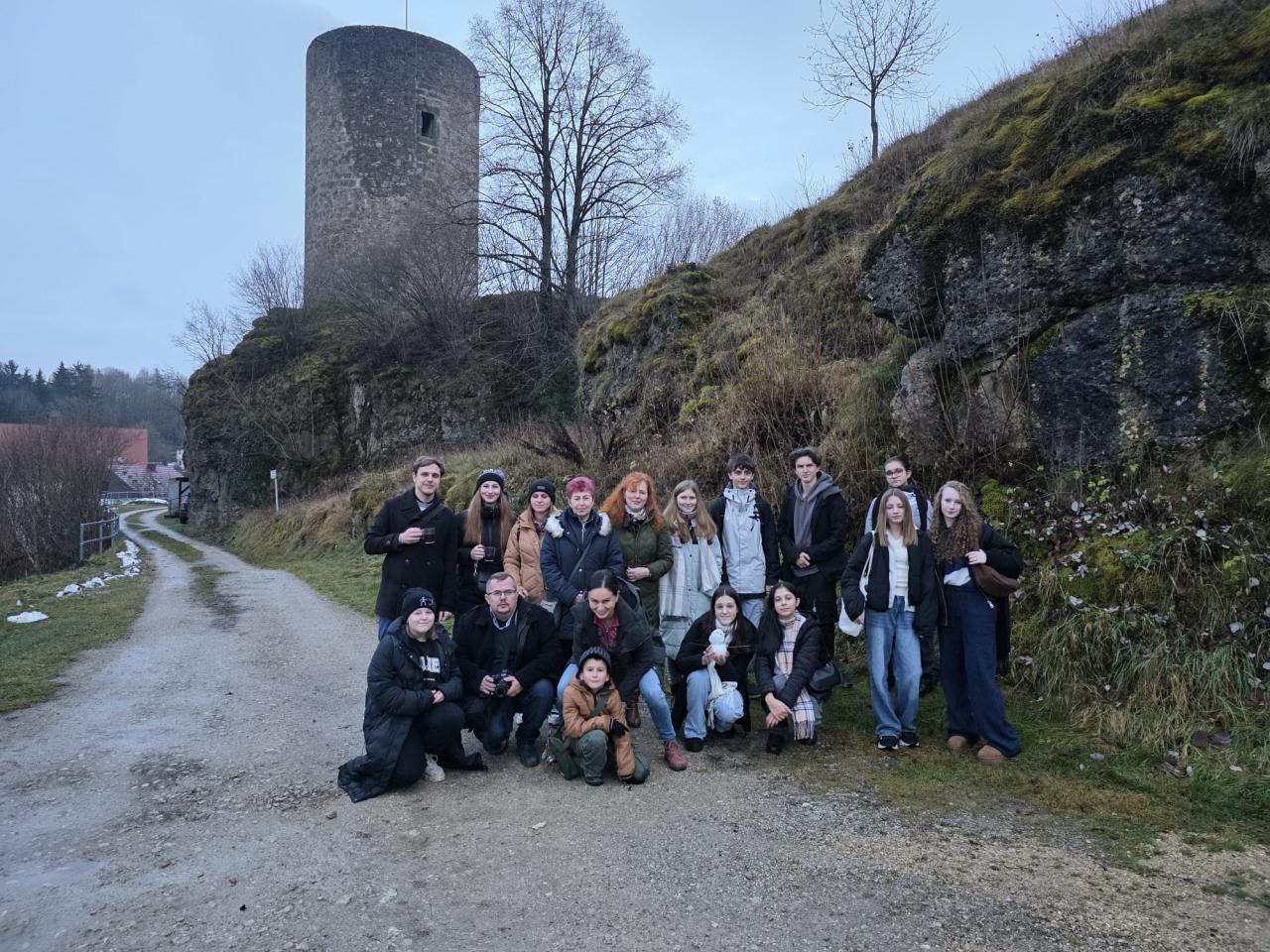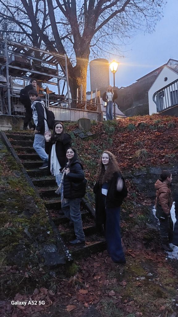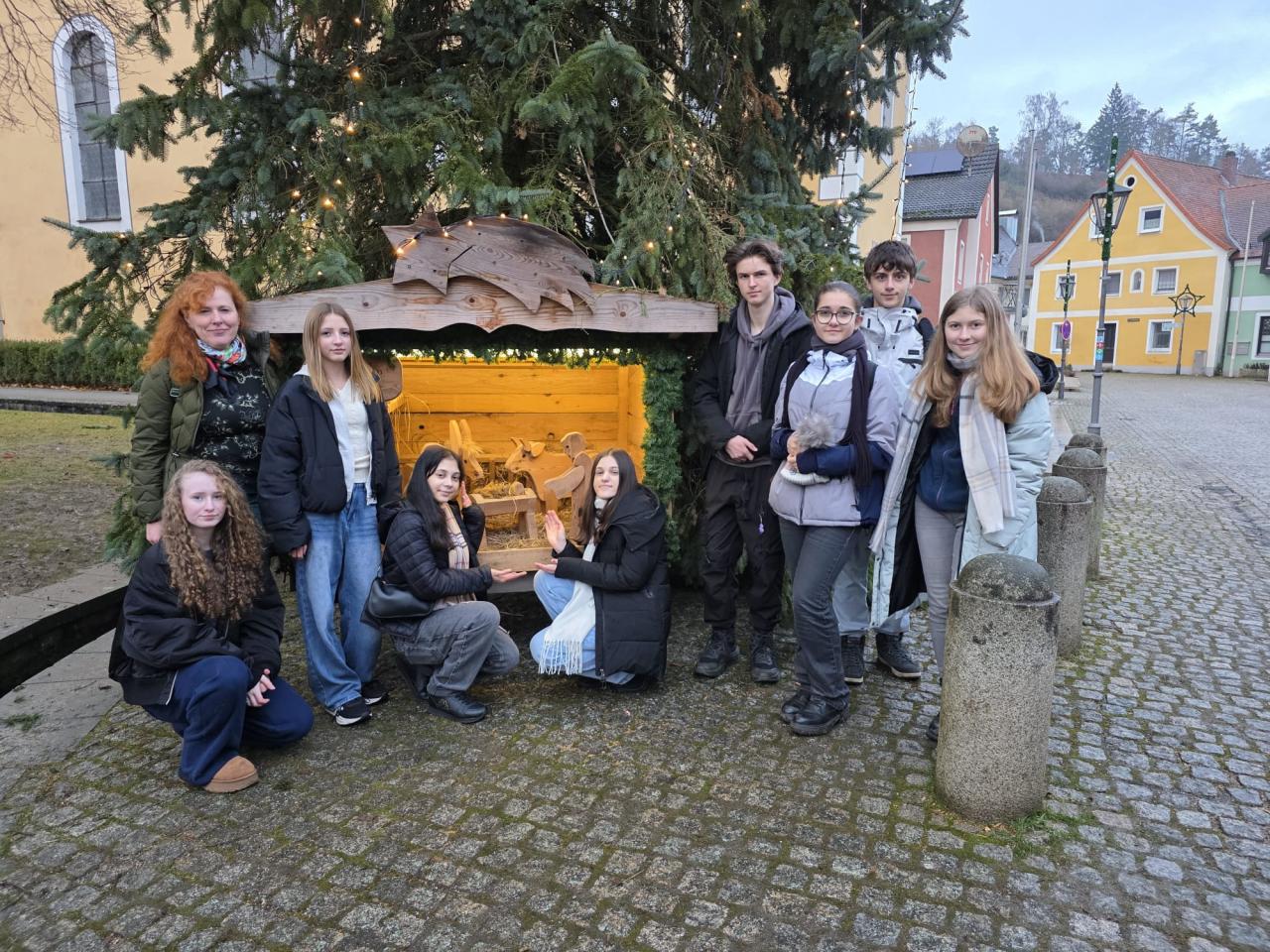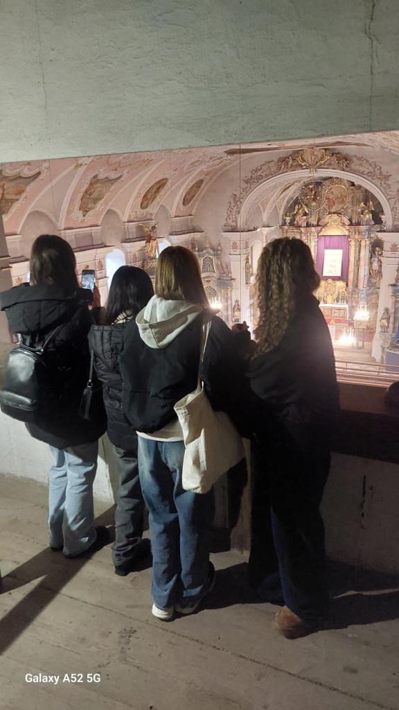 Hned po tomto milém přivítání jsme navštívili jejich krásný kostel, kde jsme po skupinkách mohli po úzkých strmých schodech vystoupat až na vysokou věž kostela. Tam jsme se doslova mohli dotknout obrovských zvonů, pravidelně vyzvánějících hohenfelský čas. Třešničkou na dortu bylo otevření kostelních varhan, na které jsme si mohli zahrát a rozeznít tak tento vznešený prostor kostela českými vánočními koledami s našimi zpěvy.
