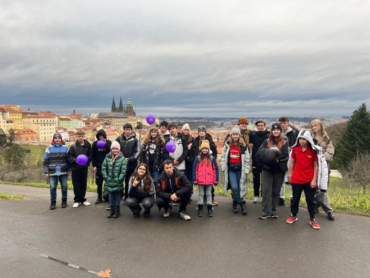 Poté naše cesta pokračovala historickým centrem Prahy a procházkou po hradním areálu, kde jsme viděli katedrálu sv. Víta, Královskou zahradu a nádherné výhledy na město. Po tomto nevšedním kulturním zážitku následoval přesun do Petřínských sadů, kde si žáci užili krásného výhledu na celou Prahu.