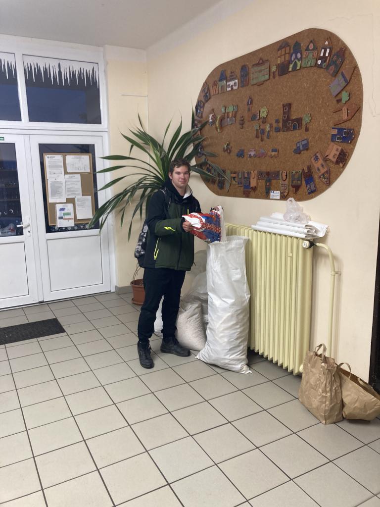 Za celou školu se nám podařilo shromáždit tři pytle tvrdého pečiva, dvě tašky jablek, mrkve a dokonce i pytle kukuřice, ječmene, žita a kaštany.