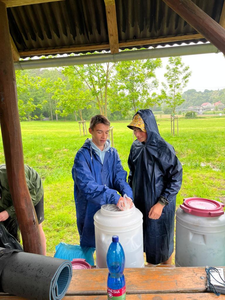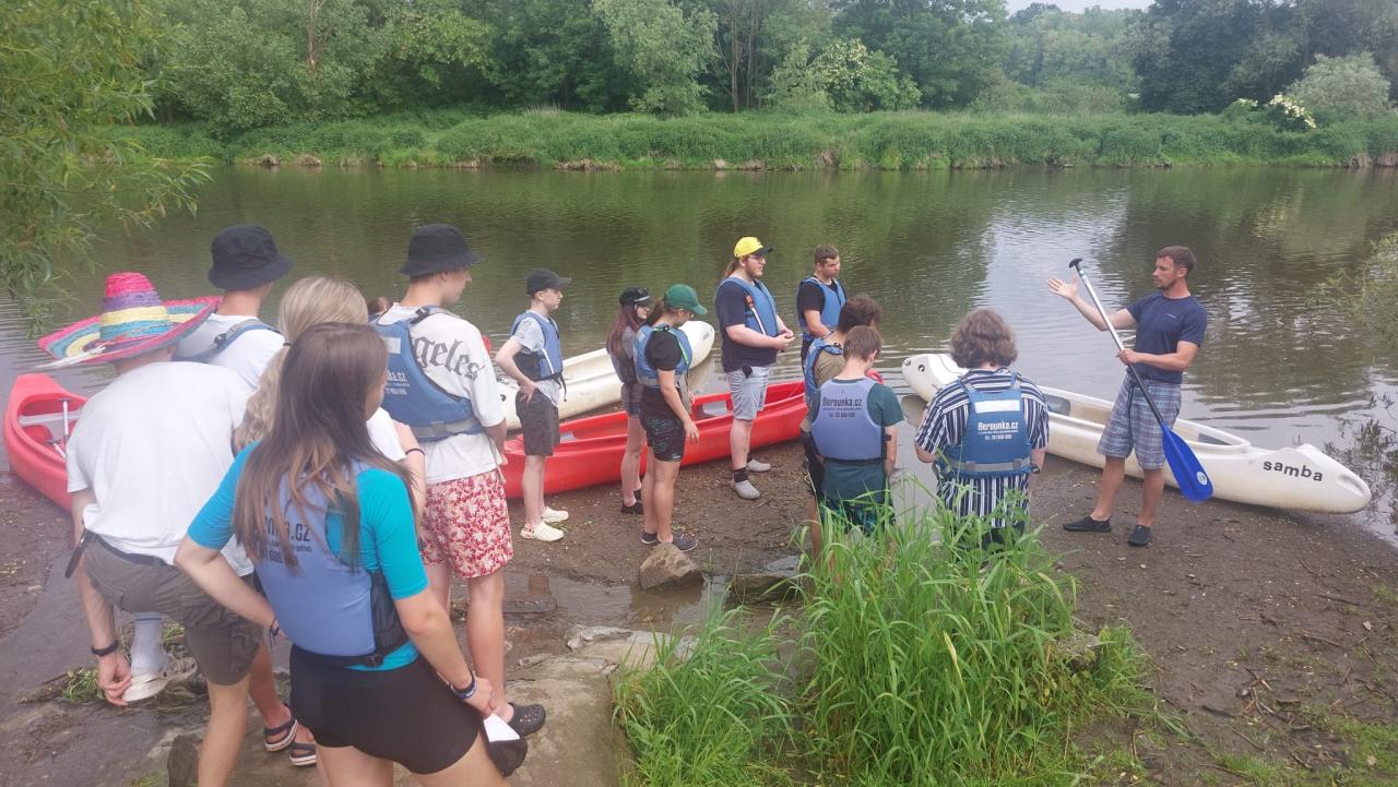 Jednadvaceti natěšeným účastníkům v deštivém ránu trochu odplaval úsměv na tváři, nicméně odhodlání překonat diskomfort během čundráckého vodního putování je neupustilo. Když jsme si balili “bandy“ pod přístřeškem u Dolanského mostu, déšť nám nad hlavami rytmicky bubnoval dobrodružnou písničku.