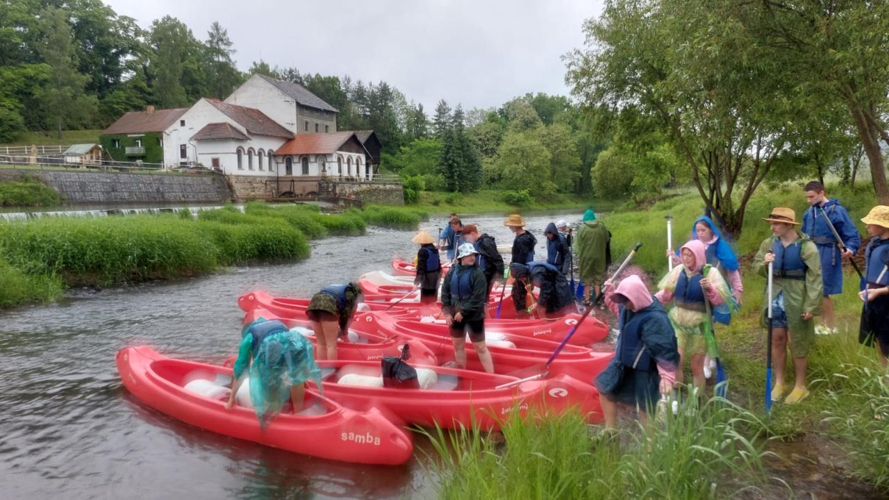 Lodě ještě nestačily přes víkend uschnout a v pondělí následujícího týdne do nich usedli natěšení chlapci a dívky z 9. B. Patnáct účastníků druhého kurzu mělo trochu více štěstí na počasí, i když to si s námi zahrávalo i tentokrát a občas nám seshora nevyzpytatelné mraky přinášely spršky, které nám ale úsměv na rtech nesmazaly.
