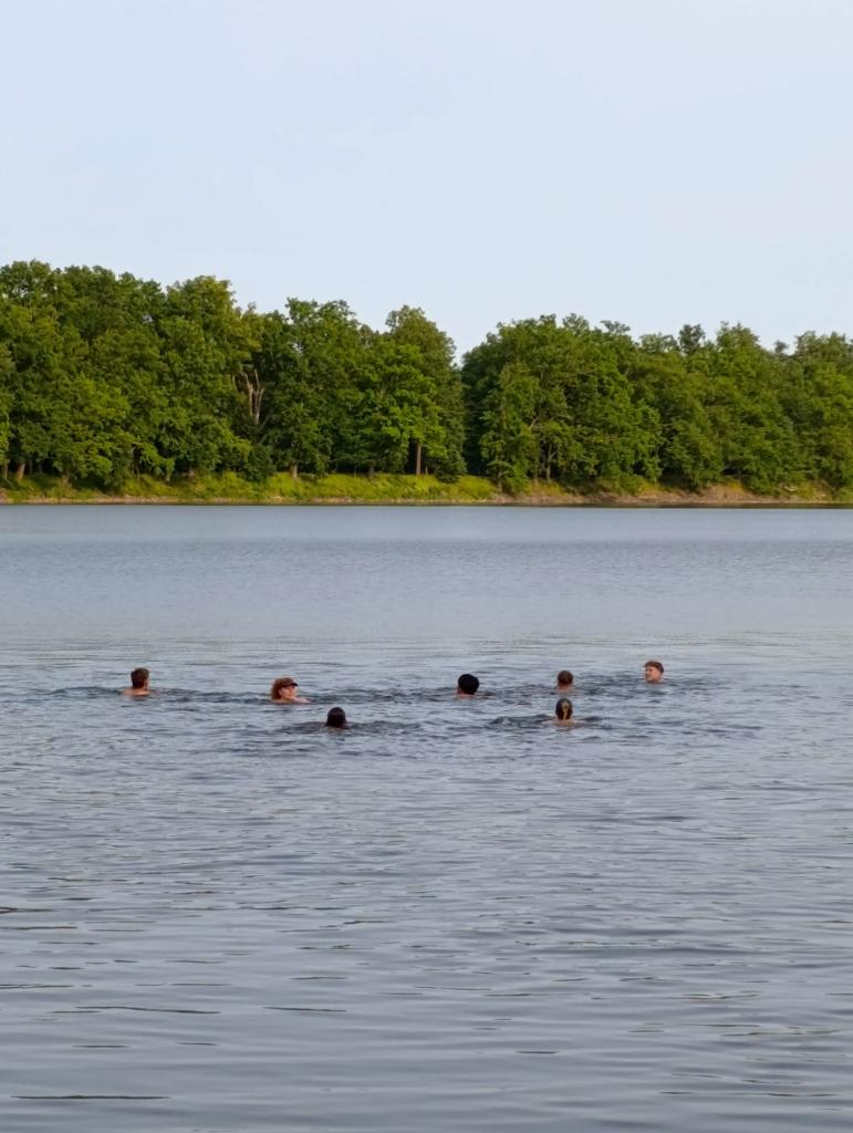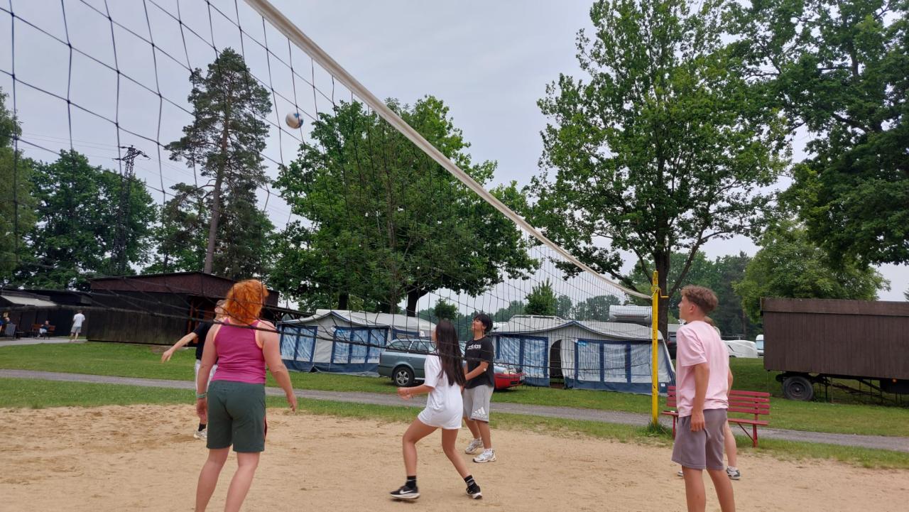 Když jsme se dokochali těmito zajímavými místy, vrátili jsme se do kempu, kde si děvčata a chlapci užívali jeho sportovní vybavenost – plavali jsme v Opatovickém rybníce a v podstatě každý večer jsme až do setmění okupovali volejbalové hřiště, které nám poskytovalo spoustu sportovních zážitků i nových kamarádských potkávání, neboť se zde naši žáci potkávali s výletníky z dalších škol.