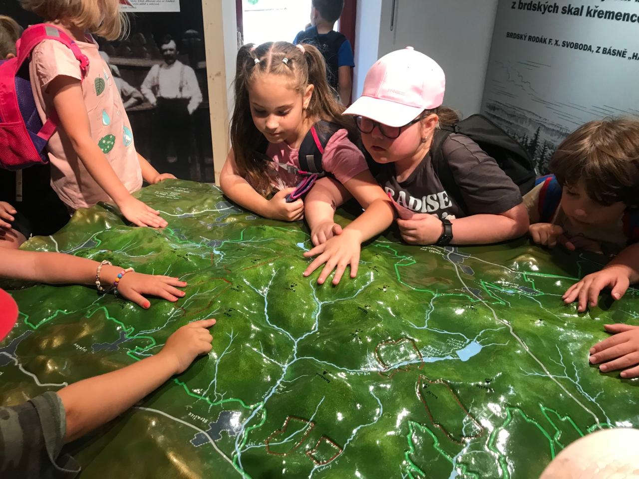 Dne 26. června se 1. a 2. třídy naší školy vypravily na výlet a exkurzi do Domu přírody v Brdech. Děti se svezly v dnes již historickém autobusu a poté šly pěšky po naučné stezce k loveckému zámečku, kde se nachází Muzeum přírody v Brdech. Po zhlédnutí filmu o přírodě a zvířatech v Brdech si děti prošly expozici o dřívějším životě lidí a současnosti Brd. Děti byly nadšeny i z možnosti si pohrát v zahradě, stejně jako si svlažit nohy v Klabavě po dlouhé túře.