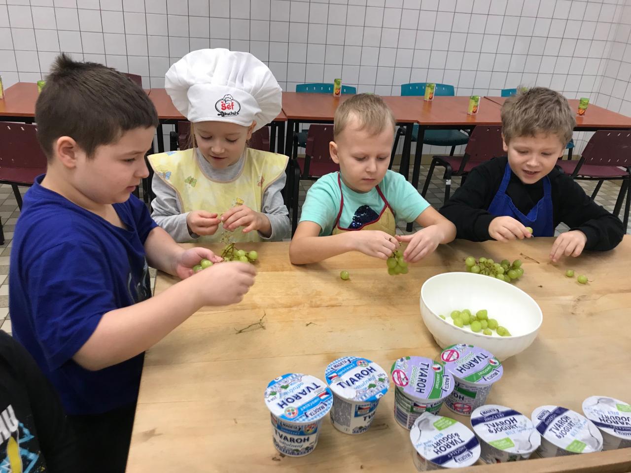 V pátek 25. ledna se naše školní kuchyňka proměnila v místo nevídaného kuchařského dobrodružství. Byla oživena smíchem a radostí, když děti převzaly kontrolu nad vařečkami a připravovaly si vlastní svačinky v rámci projektu „Ovoce do škol“.
