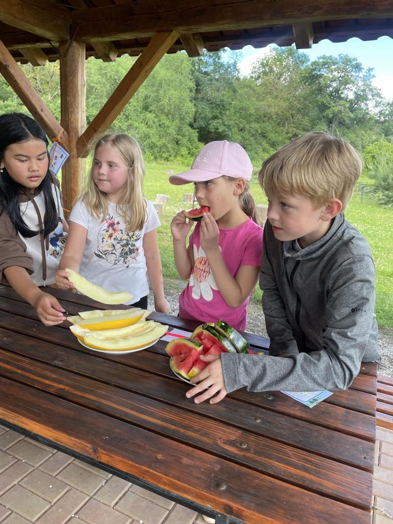 Ochutnávky melounů z projektu "Ovoce do škol" se žáci 1. stupně všichni rádi zúčastnili.
